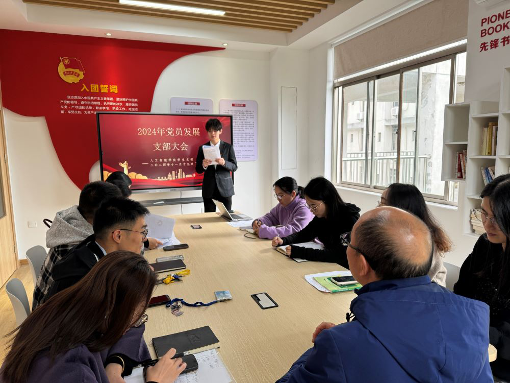 11月19日上午,人工智能学院学生党支部在一站式学生社区召开2024年度党员发展支部大会。参加本次会议的有学生支部全体党员、入党介绍人、发展对象,会议由学生支部书记周敏新同志主持。