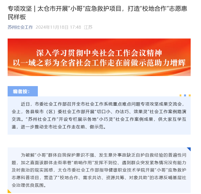 苏州社会工作 | 太仓市开展“小哥”应急救护项目,打造“校地合作”志愿惠民样板