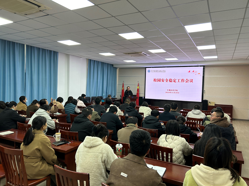 为认真贯彻落实校园安全稳定工作要求,扎实做好风险防控和隐患排查,11月20日,生物医药学院在D3-514会议室召开校园安全稳定工作会议,会议由党总支书记王志明主持,生物医药学院全体教职工参会。