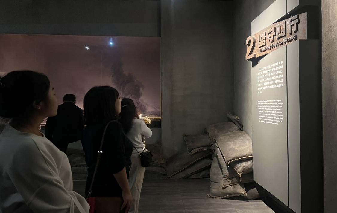 四行仓库,在“八·一三”淞沪会战后期,团长谢晋元率领“八百壮士”在这里打响了四行仓库保卫战,他们奋勇杀敌,打退敌人10多次疯狂进攻,击毙敌人200余名,沉重打击了日本侵略者的嚣张气焰,粉碎了日本“三个月灭亡中国”的错误幻想。走近四行仓库,映入眼帘的便是纪念馆西墙上触目惊心的弹孔痕迹,那是当年战斗留下的印记。进入纪念馆,党员教师依次参观了“血鏖淞沪”“坚守四行”“孤军抗争”和“不朽丰碑”四个主题展厅。参观过程中,党员教师认真观看展品和文字图片,通过实物、雕塑、现代科技等手段感受到当年战斗场景,让人为之震撼与敬佩。