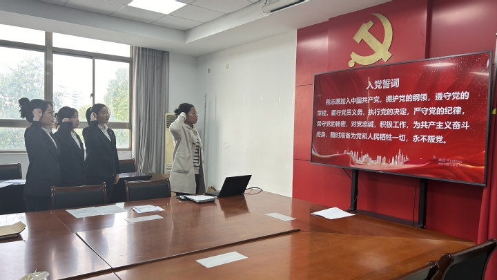 与会党员发表意见,对龚欣妍、江露露、章雅琦同志能否入党进行充分讨论,并采用无记名投票方式进行了表决,决定接收龚欣妍、江露露、章雅琦同志为中共预备党员。龚欣妍、江露露、章雅琦同志纷纷进行表态,表明自己将时刻谨记入党初心,努力发挥先锋模范作用的决心,争做新时代奋发有为好青年。王超慧老师希望龚欣妍、江露露、章雅琦同志以转正为契机,进一步加强学习,努力工作,争当一名合格的共产党员。