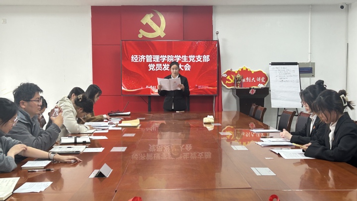 11月22日下午,经济管理学院学生党支部在C3-202召开发展党员大会。会议由学生党支部书记王超慧老师主持,学生党支部全体成员以及本次拟转正的预备党员龚欣妍、江露露、章雅琦3位同志参加了会议。