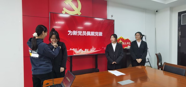 最后,张丽丽老师为此次通过转正的同志佩戴上党徽,经济管理学院学生党支部宣传委员顾子琪老师带领龚欣妍、江露露、章雅琦同志进行了庄严的入党宣誓,表明对党的坚定信念和为党的事业奋斗终身的决心。(图文/廖琦琦 审核/沈晓婷)