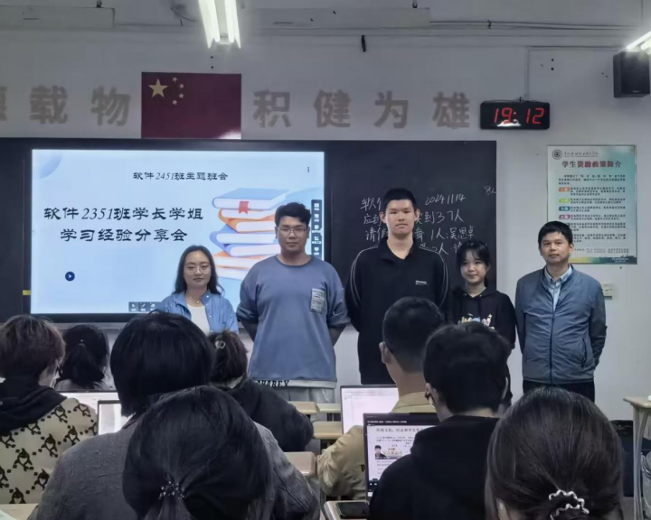 为充分调动学生学习积极性,进一步推动班级优良学风建设,11月14日晚,人工智能学院软件2351班与软件2451班联合举办了一场别开生面的学习经验交流会。本次活动由刘润宗博士精心策划,律心同老师负责具体实施。分享会上,软件2351班的三位优秀同学受邀为学弟学妹们传授学习方法和分享个人经验。