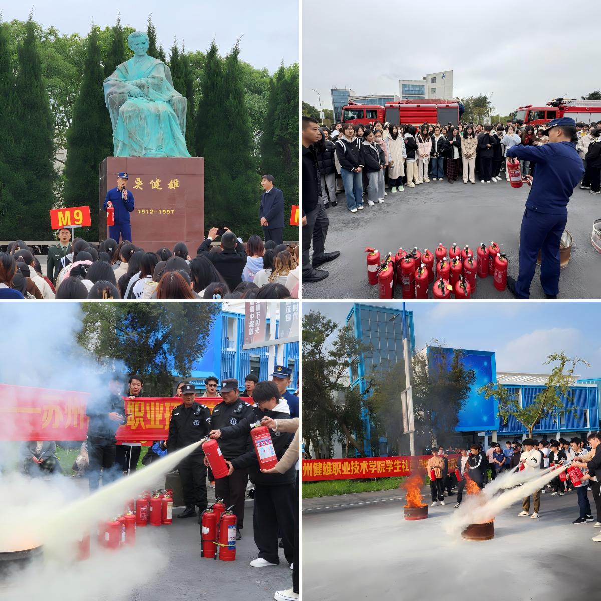 紧急疏散演练结束后,保卫处处长徐金河和科教新城消防队员分别为同学们讲解了消防疏散逃生的注意事项和手持式灭火器的日常检查及使用方法,并让同学们实际操作了灭火器的使用。