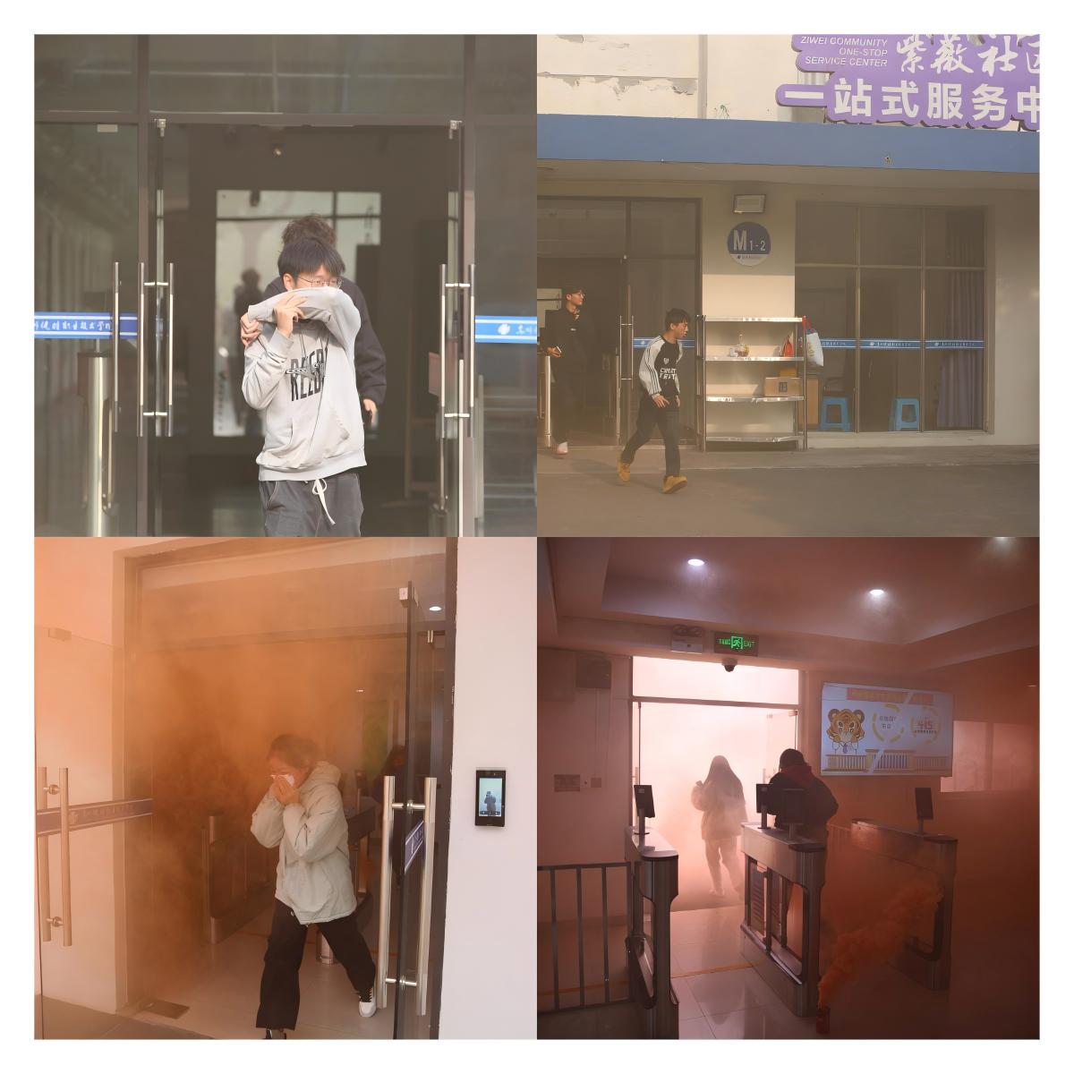 演练模拟学生宿舍楼某房间起火,同学们在辅导员、宿管员的引导下,按照预先设定的疏散路线,快速有序地向指定安全区域撤离。在疏散过程中,学生们严格遵守消防安全规定,用湿毛巾捂住口鼻,弯腰低姿前行,以确保在烟雾环境中能够安全逃生。