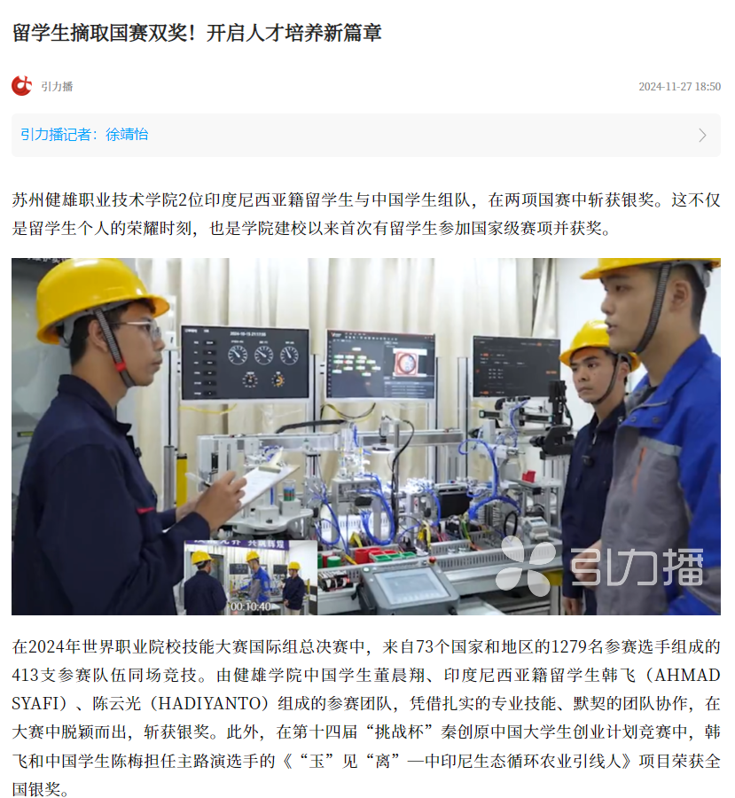 苏州日报 | 留学生摘取国赛双奖!开启人才培养新篇章