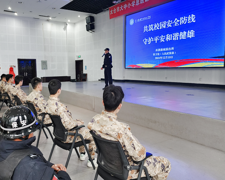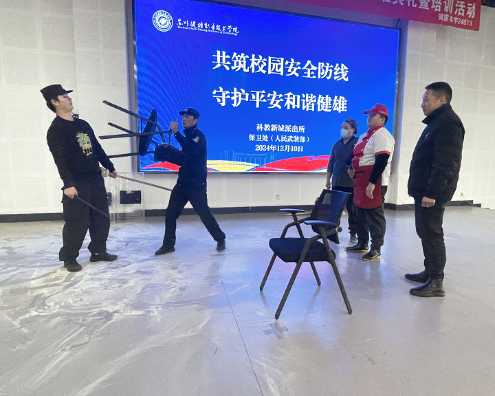 为深入贯彻落实习近平总书记、李强总理近期的重要指示精神,切实提高校园防暴恐应急处置能力,学院于12月11日下午开展“共筑校园安全防线,守护平安和谐健雄”防暴恐专题培训活动。活动邀请科教新城派出所杨斌俊警官现场指导,学院辅导员、退役大学生先锋队成员、食堂工作人员、校园商超员工、保安员、宿管员、保洁员等60余人参加了本次活动。