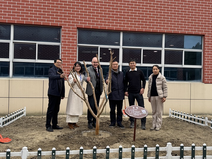 为不断深化双元制校企合作模式,赓续亿迈齿轮与学院深厚友谊的双元制教育故事,12月9日,智能制造学院邀请亿迈齿轮全球人力资源副总裁Benedikt Lenhart先生、亿迈齿轮(太仓)有限公司中国区副总裁蔡宇一行共植友谊之树。苏州健雄职业技术学院党委副书记、院长林长永,党委委员、副院长周晓刚,智能制造学院党总支书记周玲余、副书记吴成炎参与接待,并对企业的到来表示热烈欢迎。