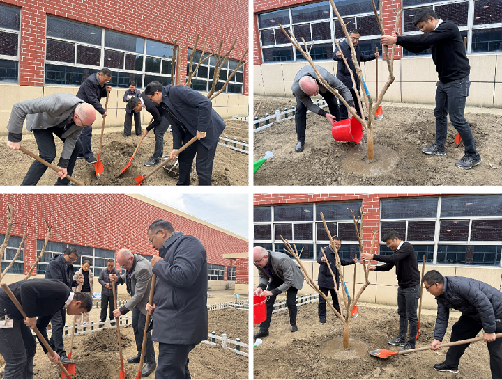 随后,一行来到智能制造学院“智耕小径”劳动教育基地,共同种植紫薇树。林长永介绍:紫薇不仅是苏州健雄职业技术学院校花,更有紫气东来、和平友好的寓意,希望苏州健雄职业技术学院与亿迈齿轮(太仓)有限公司能够继续深化校企合作,持续深化双元制学徒项目教育模式,实现校企合作双元育人取得成效。