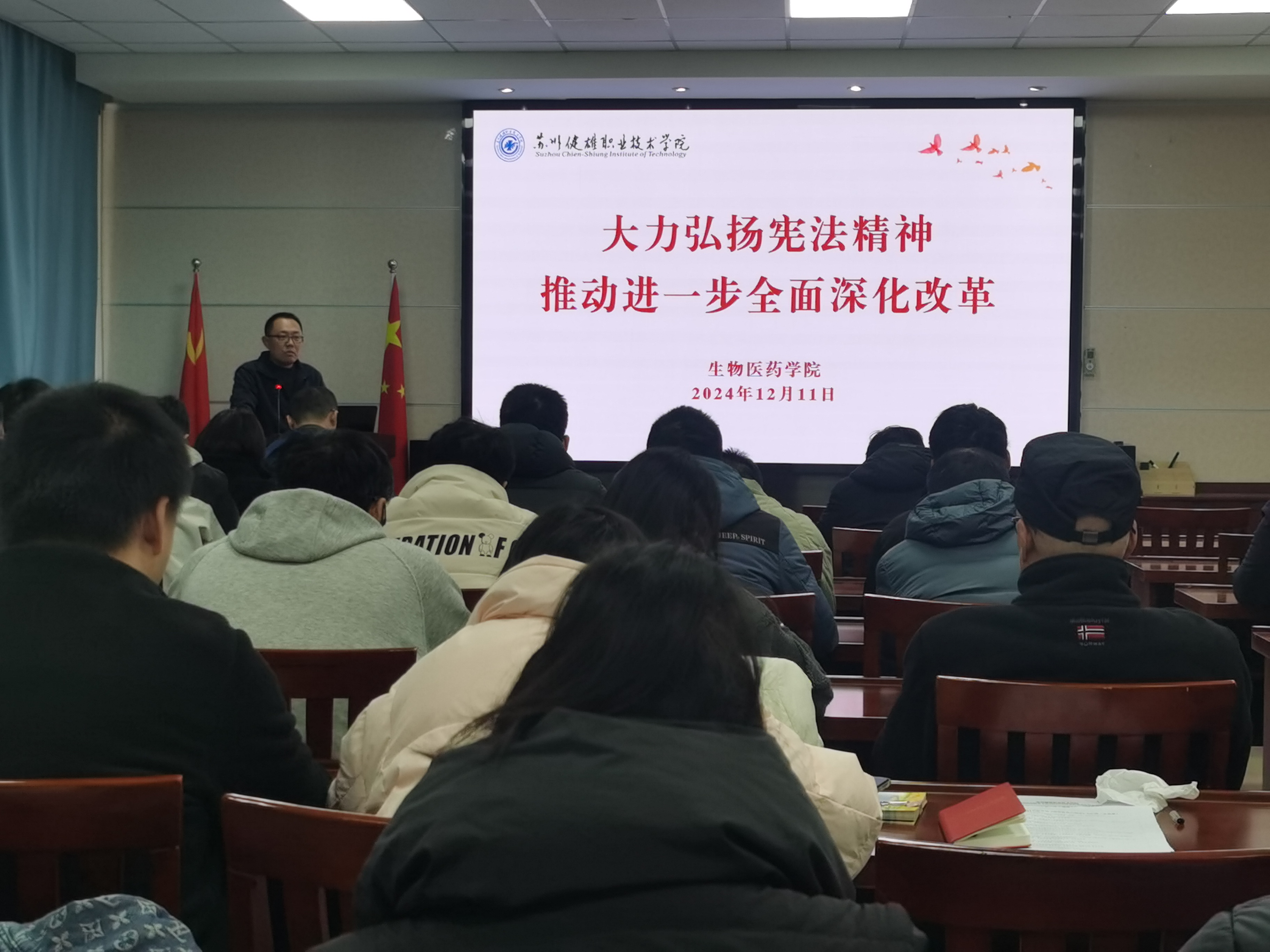 宪法作为国家的根本大法,是治国安邦的总章程。为推动宪法精神更好融入教育教学全过程,12月11日,生物医药学院在D3-514开展学习宪法活动。会议由生物医药学院党总支书记王志明主持,全体教职工参会。