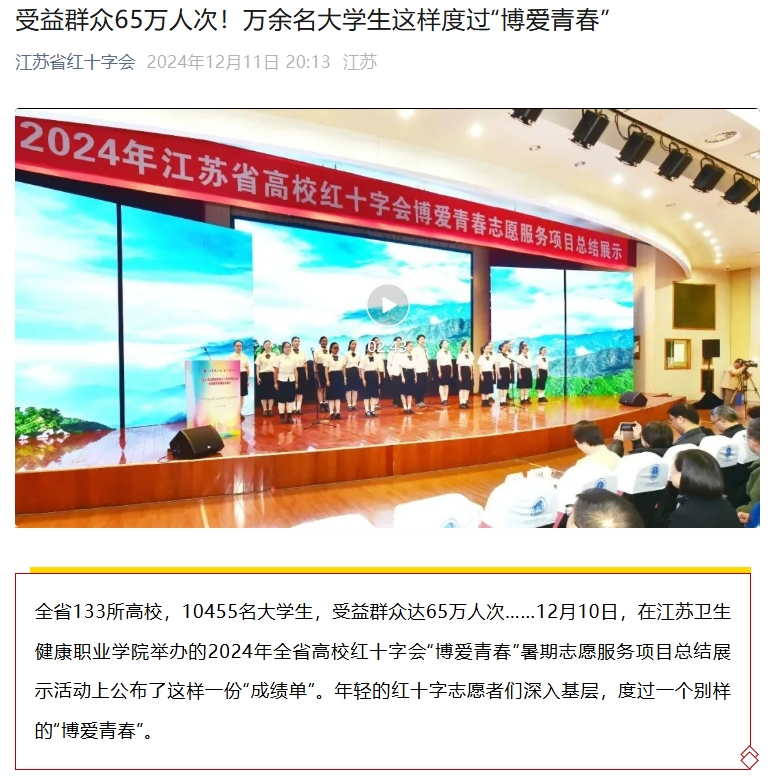 江苏省红十字会 | 受益群众65万人次!万余名大学生这样度过“博爱青春”