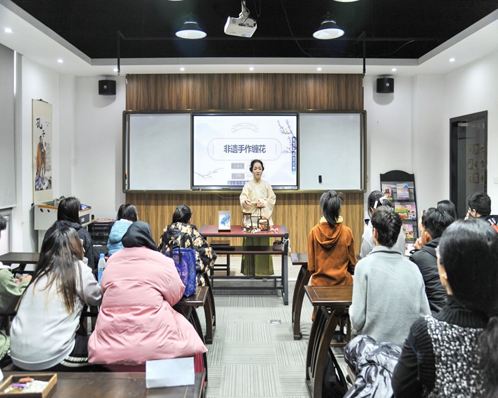 12月12日下午,太仓弇山汉服社为我院24级全体留学生们带来了一场独具匠心的非遗手作缠花体验活动。本次活动以传统手工艺为桥梁,引领留学生深入领略中华传统文化的精致与典雅。