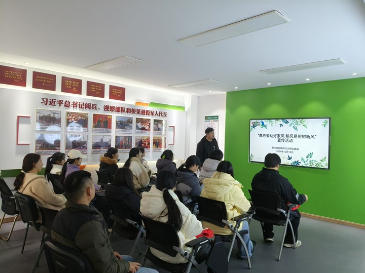 12月18日,人工智能学院学生志愿者走进德兴社区开展“尊老爱幼好家风,移风易俗树新风”主题宣传活动。此次活动旨在通过实际行动提升社区居民的生活质量,并增强社区的凝聚力。活动中,志愿者们积极发言讨论如何有效地建设优化老社区以及提高居民的环保意识,为社区居民带来温馨的陪伴与精神的滋养。