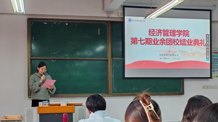 为深入贯彻习近平总书记关于青年工作的重要思想,提升广大青年思想觉悟,进一步加强青年意识形态教育,团结带领广大青年听党话、跟党走,切实增强先进性和责任感,为党团组织培养和输送合格人才,12月18日,经济管理学院于C3-301教室举行第七期业余团校结业典礼。经济管理学院团总支书记顾宇婷及164名业余团校学员出席本次活动。