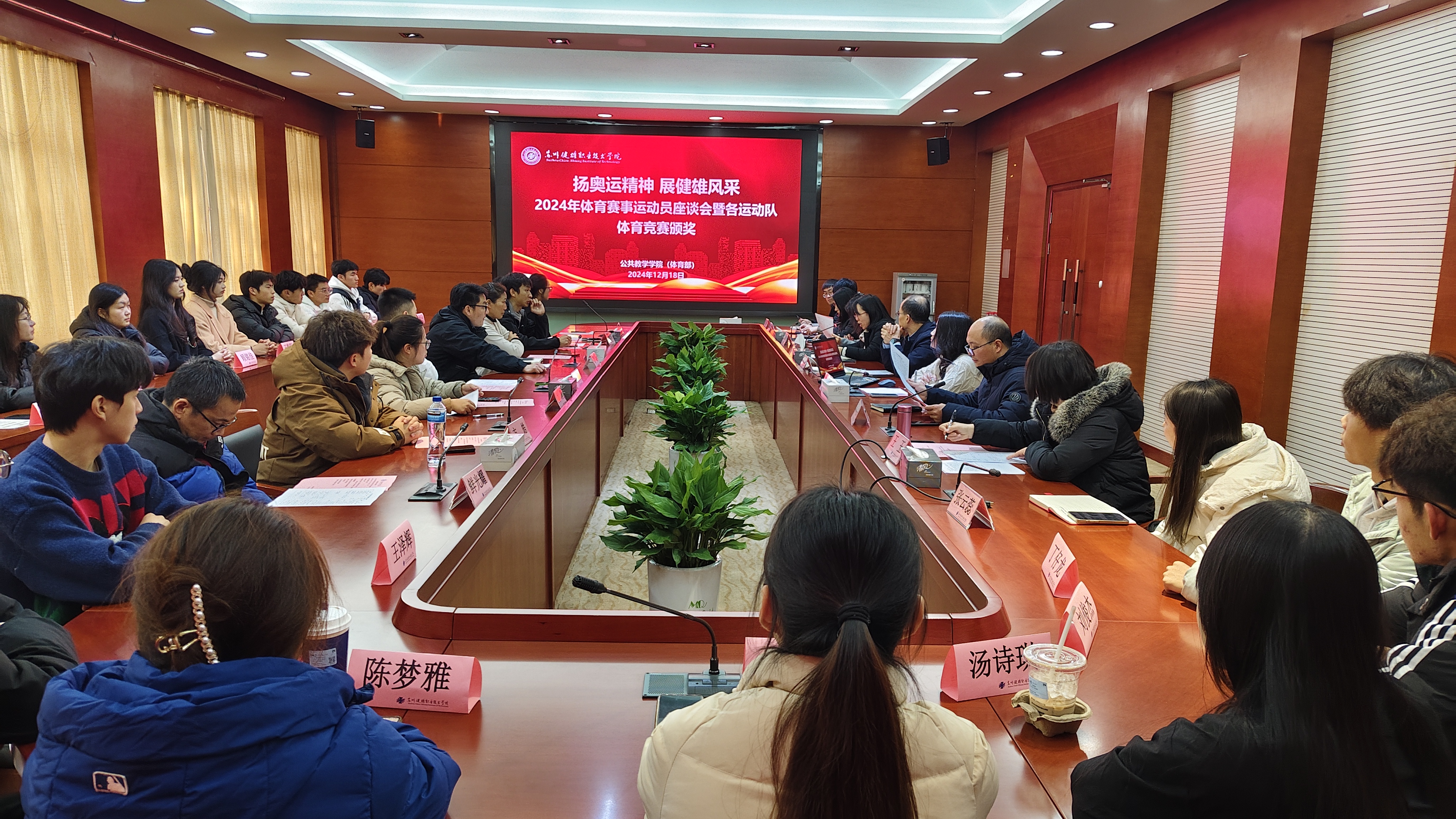 12月18日下午,公共教学学院(体育部)在吴园第一会议室成功举办“扬奥运精神 展健雄风采” 2024年体育赛事运动员座谈会暨各运动队体育竞赛颁奖活动。学院党委委员、副院长吴建洪,学生处、团委、各二级学院书记、公共教学学院(体育部)领导班子、体育部全体老师参加活动,活动由公共教学学院(体育部)副书记韩学芹主持。此次活动旨在回顾过去一年体育工作的点滴,为未来体育事业的持续发展注入新的动力,让体育精神在校园内不断传承、发扬光大。