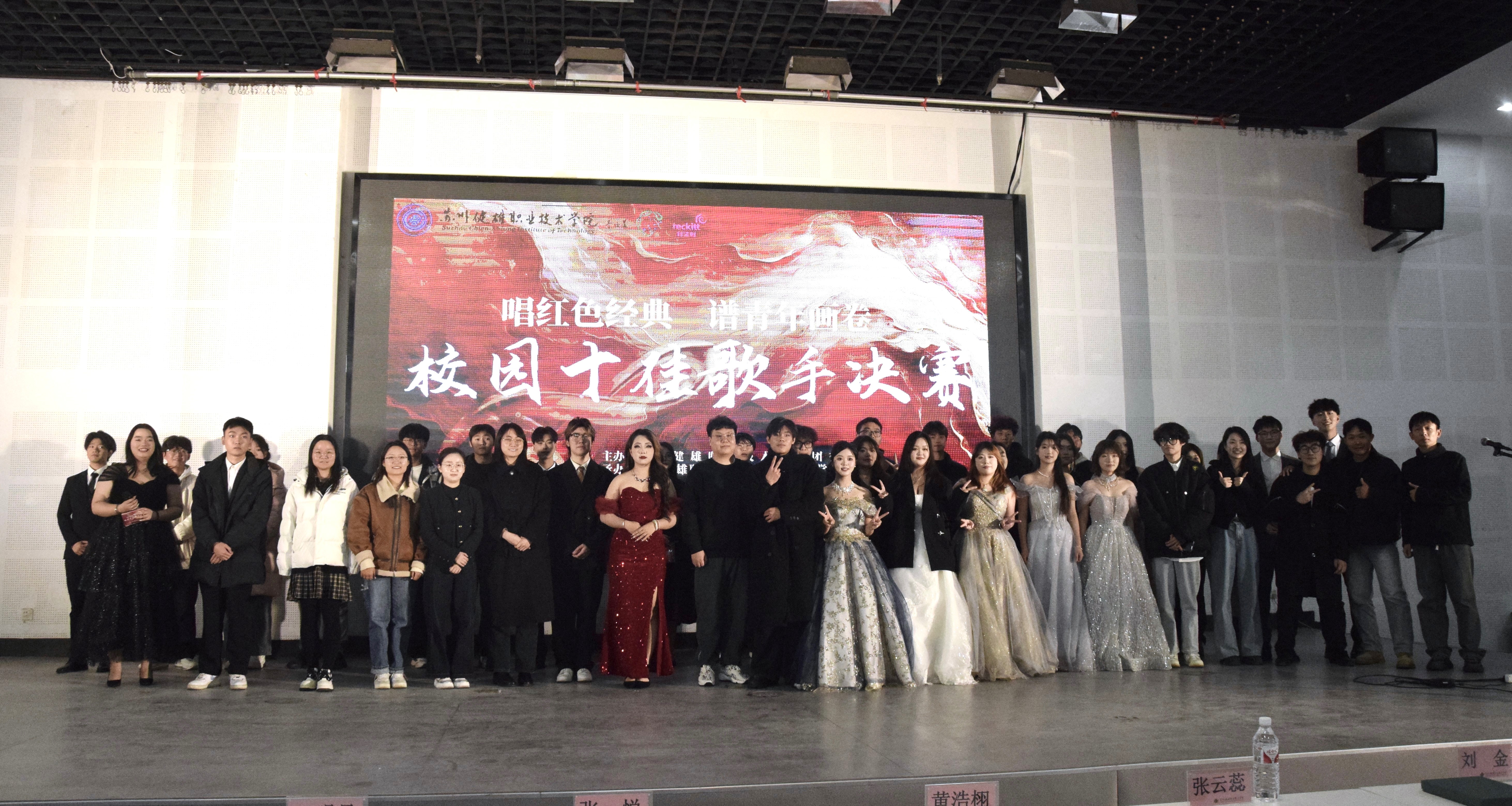 经过前期海选、初赛和复赛层层遴选,最终共有十五位选手成功晋级决赛。决赛分为两轮进行,第一轮选手们演绎红色经典歌曲,用歌声传递爱国情怀和革命精神;第二轮则采用随机抽取曲目的方式,考验选手们的应变能力和音乐素养。决赛现场气氛热烈,选手们用各自独特的嗓音和真挚的情感,将一首首红色经典和流行歌曲演绎得淋漓尽致。从《龙的传人》的激昂旋律,到《九儿》的深情诉说;从《寂寞先生》的孤独吟唱,到《星河叹》的壮阔豪情,选手们的歌声如同天籁之音,为现场观众带来了一场视听盛宴。经过两轮激烈的角逐,肖林娜同学获得冠军。同时,肖林娜、党博磊、潘语礼、程瑾瑜、周智林、刘新雨、张睿旗、陈倩、吴玘瑶、苏雨俊等十位同学荣获“十佳歌手”称号。
