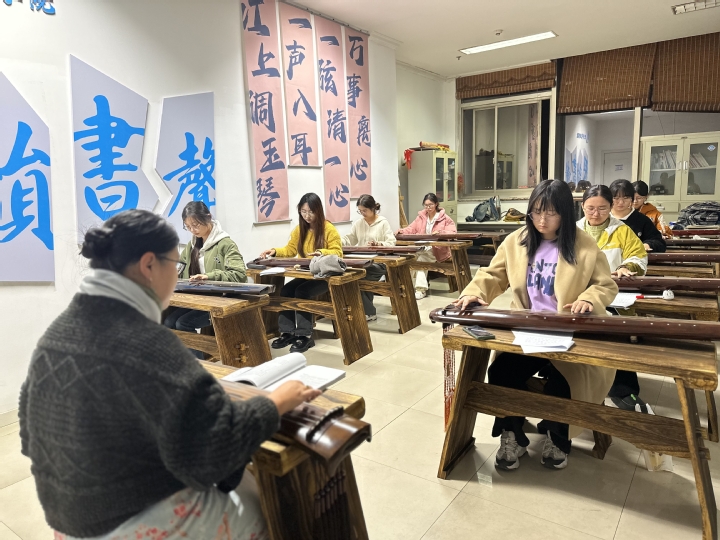 在书法课堂上,同学们深入研习书法的理论知识与基本技法,经过不懈练习,逐步领悟并掌握了书法的技巧精髓;国画课堂则致力于激发学生的艺术创造力与表现力,通过亲身实践,让学生深切感受到国画艺术的独特魅力;古琴课堂上,同学们不仅精进了古琴演奏技巧,更在悠扬琴声中深刻体会到了传统文化的博大精深。