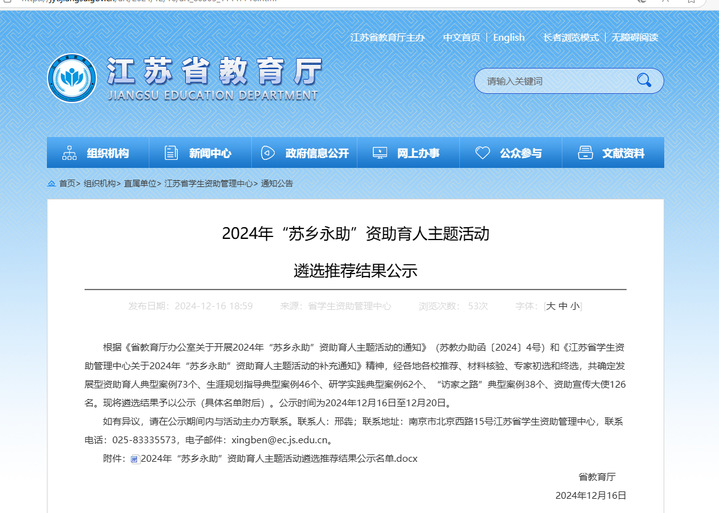 近日,省教育厅公示了2024年“苏乡永助”资助育人主题活动遴选推荐结果。经学校遴选推荐,省教育厅专家评审等环节,经济管理学院李志辉老师获评省“学生资助宣传大使”荣誉称号。