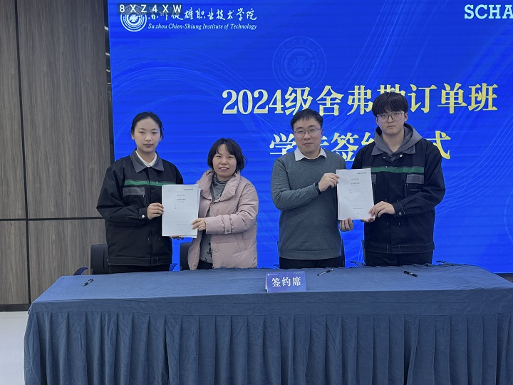 在签约仪式上,党委委员、副院长周晓刚致辞。他表示,我院与舍弗勒合作开展双元制学徒培养模式已经18年,十几年来校企双方在学徒培养、师资建设、专业建设等方面都取得了令人欣喜的成绩,共同培养了大批技术技能型人才骨干。周晓刚对2024级舍弗勒班学生提出三点期望,一是沉心静气,厚积薄发;二是心怀感恩,学会感恩;三是脚踏实地,认真做好每一件小事,努力成长为适应时代发展的高素质技能人才。