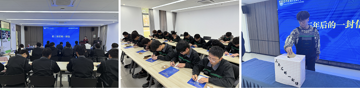 机电2413学生代表分享成为舍弗勒学徒“0到1”蜕变,23名学生在明信片上写下对未来的期许,寄送给三年后的自己。