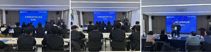 2015级舍弗勒项目班优秀毕业生张景淞,2023级舍弗勒项目班优秀学生代表文佳佳,分别致辞与发言,分享作为舍弗勒双元制项目学徒成长经历、学习感悟和现在工作情况,周晓刚为张景淞颁发讲师聘书。