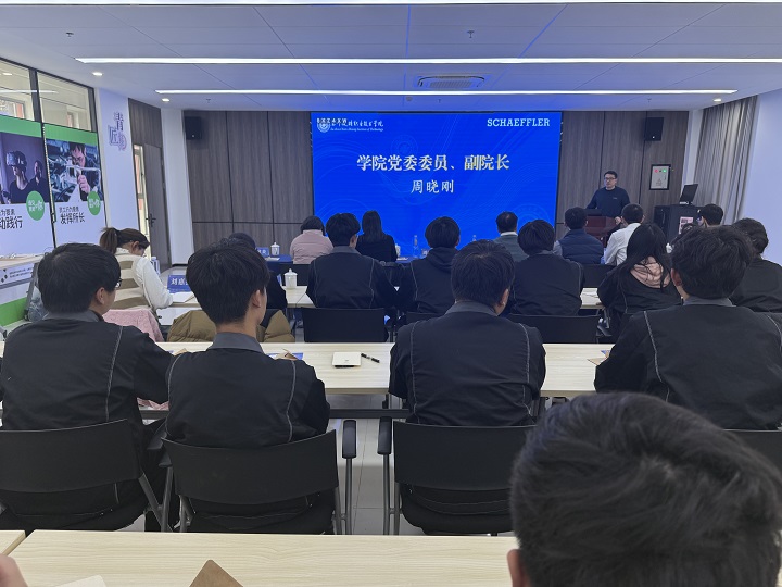 12月19日下午,我院与舍弗勒双元制学徒项目2024级新生签约仪式在东校区D1-103举行。学院党委委员、副院长周晓刚,舍弗勒大中华区高级经理徐昱晨,智能制造学院党政负责人,优秀毕业生、优秀学生代表,项目辅导员、培训师,以及全体2024级舍弗勒双元制学徒项目新生参与签约仪式。