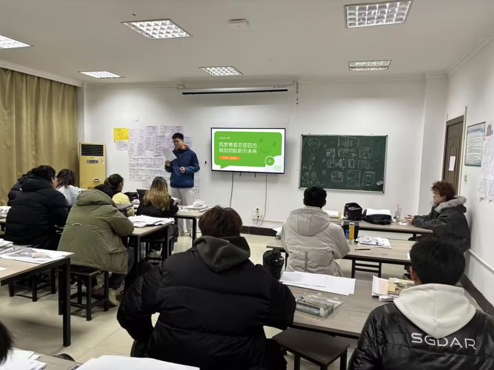 李宗豫分析了目前的就业形势和艺术设计行业的发展趋势,强调了综合素质和专业能力的重要性,分享了本校优秀毕业生和行业专家的成功案例。在实践环节,同学们分享了对未来的憧憬和职业规划的初步想法,并制定了个人职业规划,写下短期、中期和长期职业目标。李老师逐个指导,帮助学生更加全面的认识自己、认知职业,从而更加合理安排学业、实践成长。
