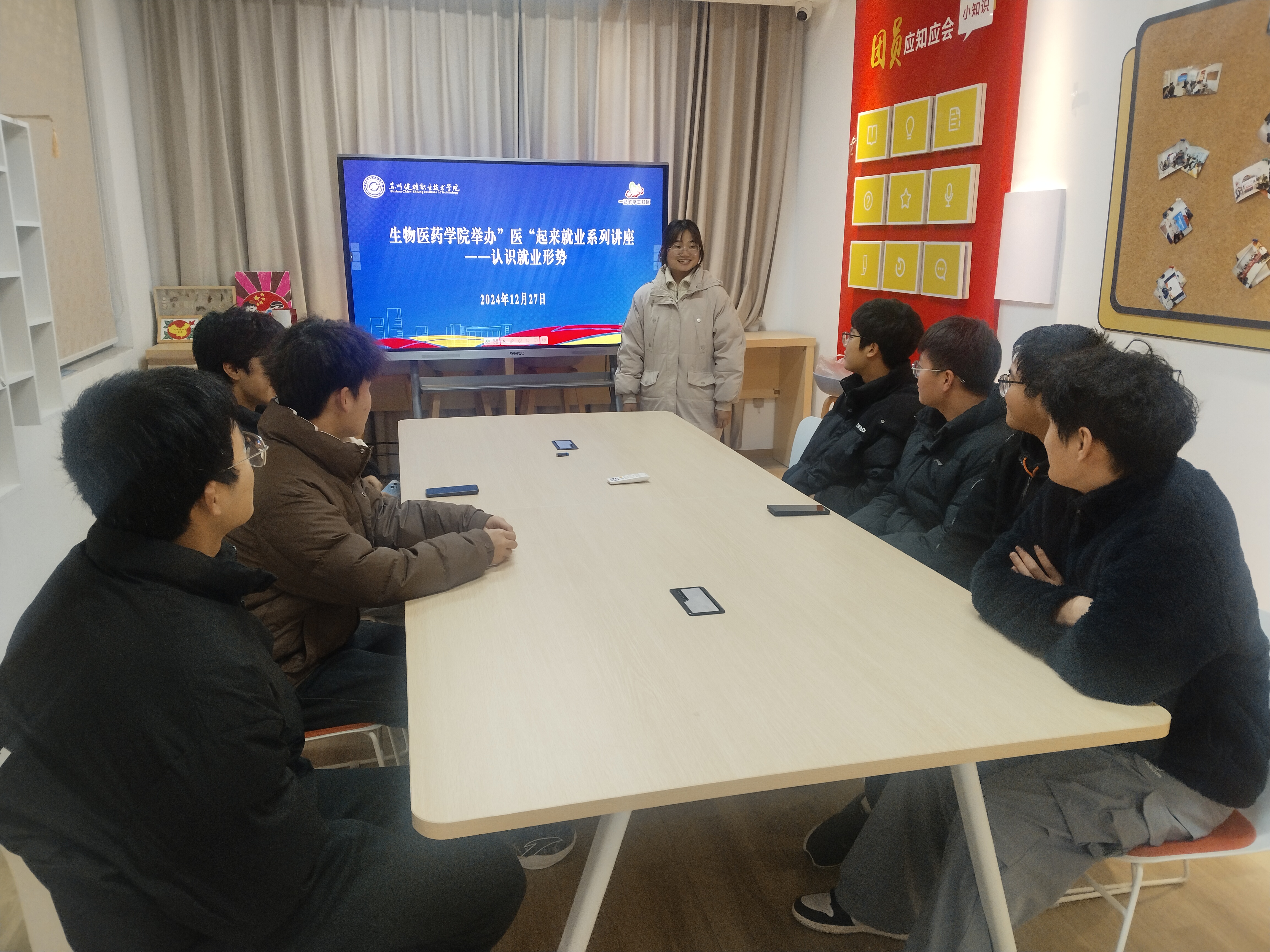 为帮助学生更好的认清就业形势,树立正确的择业观、就业观,12月27日,生物医药学院在学生一站式社区举办了“勇往职前向未来”就业系列讲座之认识就业形势。