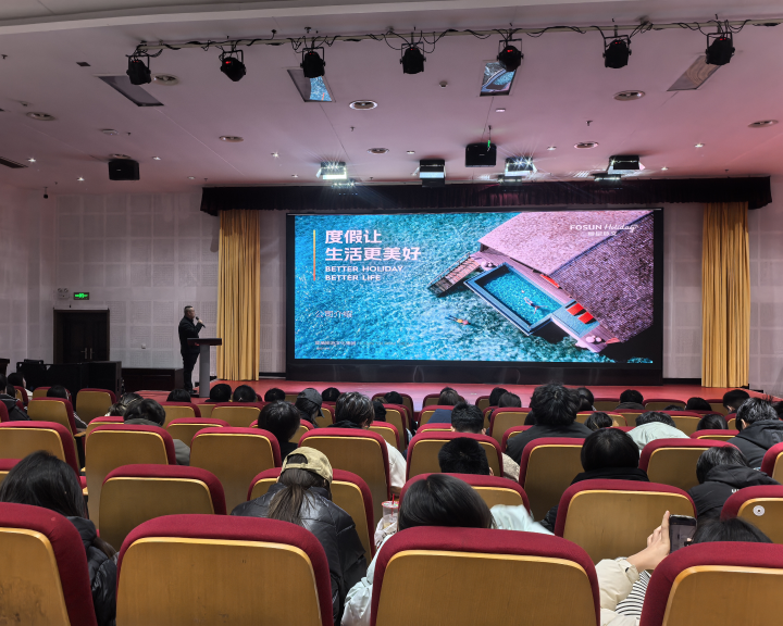 会上,悦雪(太仓)旅游文化开发有限公司的人力资源总监邵帅先生向在场师生详细介绍了复星旅文集团及太仓阿尔卑斯国际度假区的辉煌成就与发展愿景以及本次招聘会的岗位设置与福利待遇。本次招聘共开放十个岗位,涵盖了场地运营、滑雪教练等多个领域,既有面向未来的长期实习岗位,也有适合寒假期间的兼职岗位,总计需招聘90名优秀人才。邵总详细阐述了各岗位的职责要求、晋升路径以及企业为员工提供的薪酬福利。