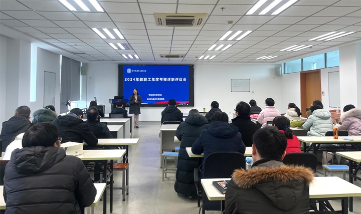 为充分发挥考核评价的导向和激励作用,塑优我院教师队伍形象,持续营造干事创业良好氛围,1月8日下午,智能制造学院在东校区A1-402会议室开展2024年度教职工考核述职评议会,学院党总支书记周玲余主持会议,全体教职工参会。