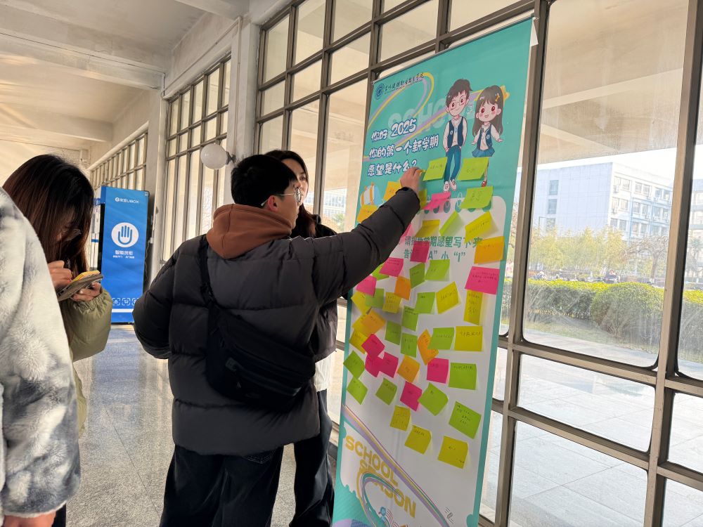 活动现场,还特别设置了心愿墙环节。同学们纷纷向小“AI”小“I”许下自己的新学期心愿。“学业进步 未来可期”“交到更多朋友”“找个好工作”…… 这些简单而真挚的话语,汇聚成一整面五彩斑斓的心愿墙,寄托了同学们对新学期的美好憧憬和愿望,为新学期的学习生活注入了新的活力和动力。