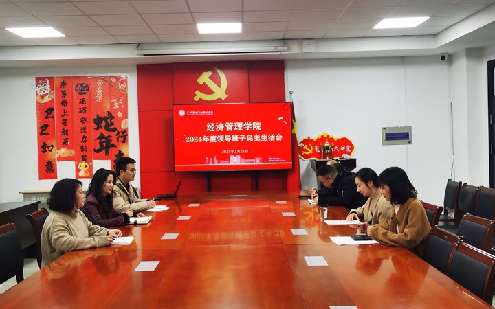 2月26日,经济管理学院党总支召开2024年度领导班子民主生活会,会议由党总支书记沈晓婷主持,党总支副书记李志辉、党总支委员傅兰、王超慧、章云霞参会,院长樊奇、标准化办公室主任苗向阳列席会议。