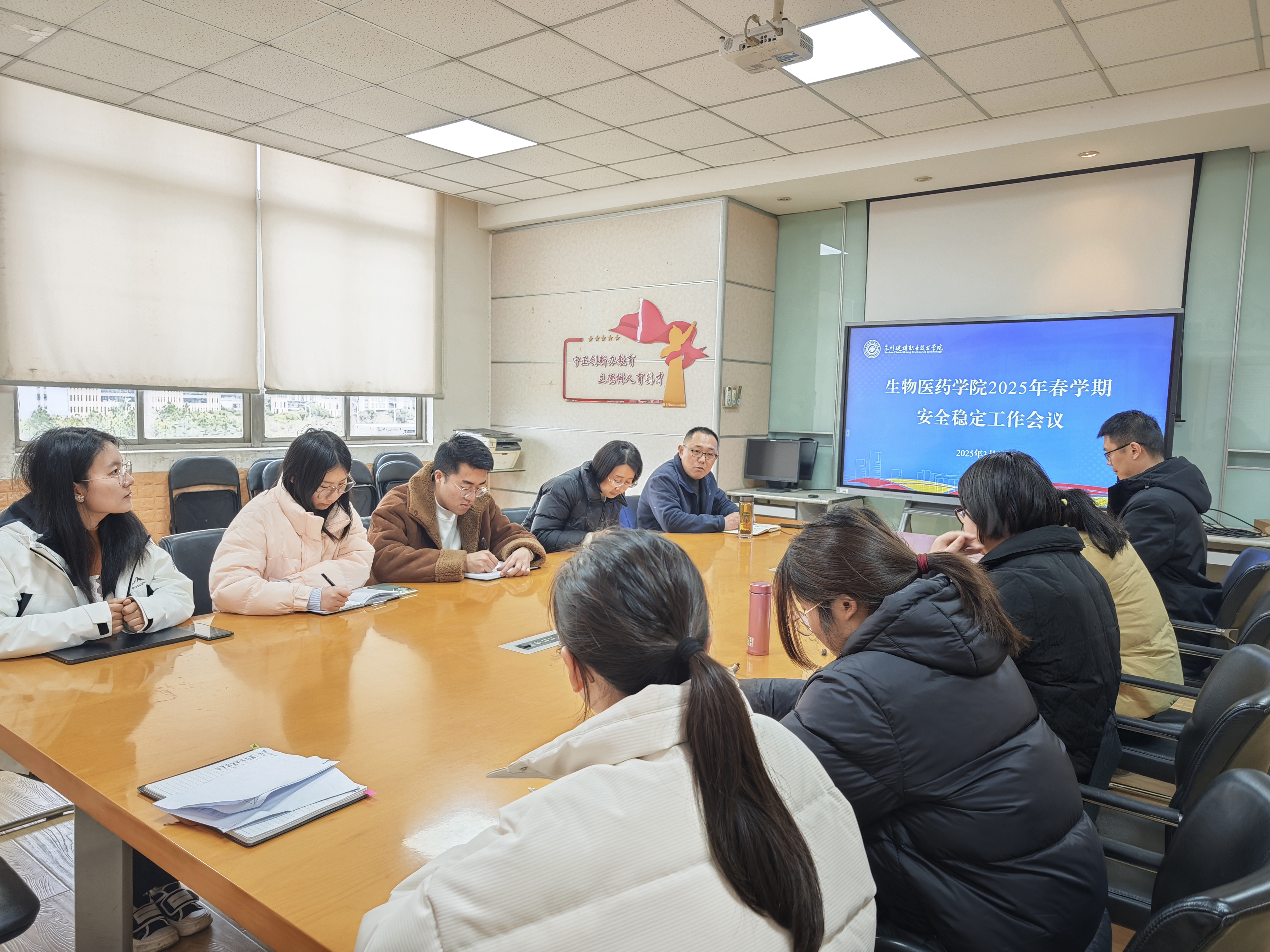 为认真贯彻落实总体国家安全观,扎实做好春学期校园安全稳定工作,确保教育教学秩序平稳有序,3月3日,生物医药学院在D3-510会议室召开2025年春学期校园安全稳定工作会议,生物医药学院班子成员、全体辅导员、实验实训室专职管理员等参加会议,会议由党总支书记王志明主持。