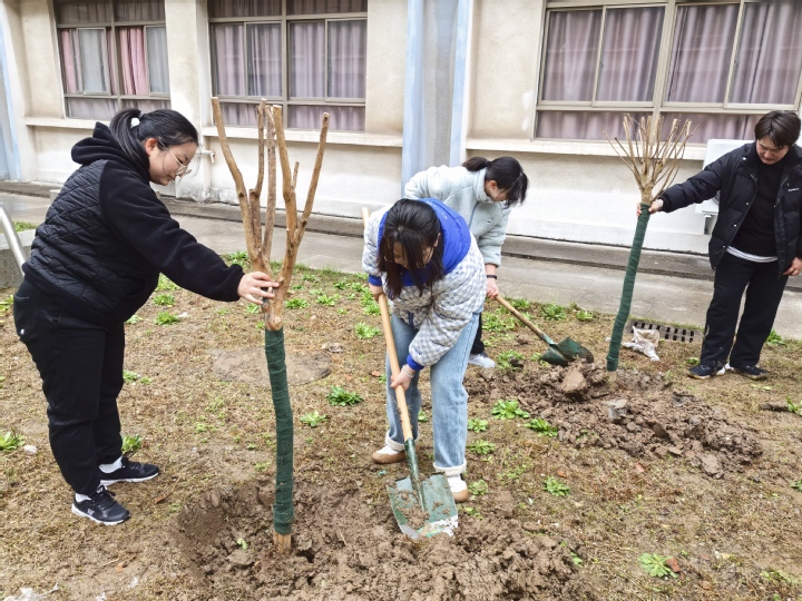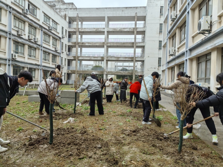 春风吐绿,草木初萌。3月12日植树节当天,经济管理学院在口袋公园举办“三春冠誉载国奖,十二紫薇铭姓名”主题植树活动。近三年获得国家奖学金的8位优秀学子与20余名师生代表共同参与,以植绿护绿行动践行劳动教育,以树铭志传承榜样力量。