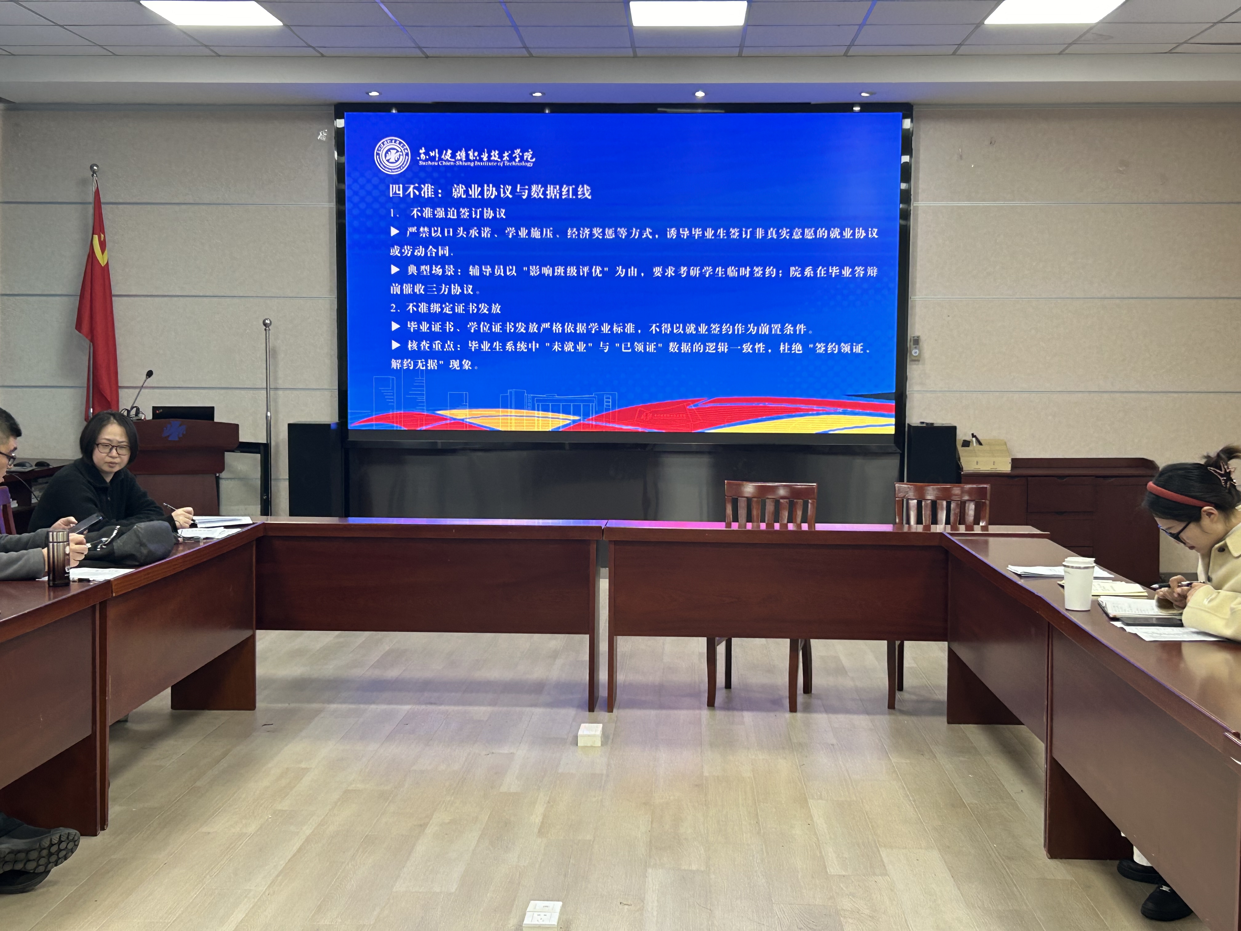 在讨论过程中,党总支副书记王玉着重强调,在推进就业工作的进程中,务必严格遵守“三不准四不得”原则。“三不准”即不准以任何方式强迫毕业生签订就业协议和劳动合同,不准将毕业证书、学位证书发放与毕业生签约挂钩,不准以户档托管为由劝说毕业生签订虚假就业协议;“四不得”指的是不得在公示就业数据时弄虚作假,不得在校外设立虚假实习基地,不得安排学生从事与专业无关的实习工作,不得将学生实习与营利挂钩。全体班主任和辅导员必须坚守底线,确保就业工作的公平、公正、真实,切实维护学生的合法权益。