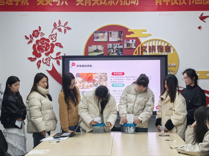 在对未来工作的展望中,宋雨真提出了新的规划与目标。她指出,心理委员要定期组织心理健康主题活动,通过多样化的形式增强同学们的心理调适能力,缓解焦虑与压力。现场主持开展了“坏情绪粉碎机”互动游戏,让心理委员们在轻松的氛围中体验压力释放的快乐,也为后续活动的开展提供了范例。