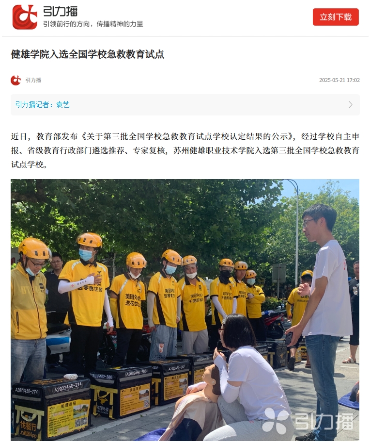 引力播 | 健雄学院入选全国学校急救教育试点