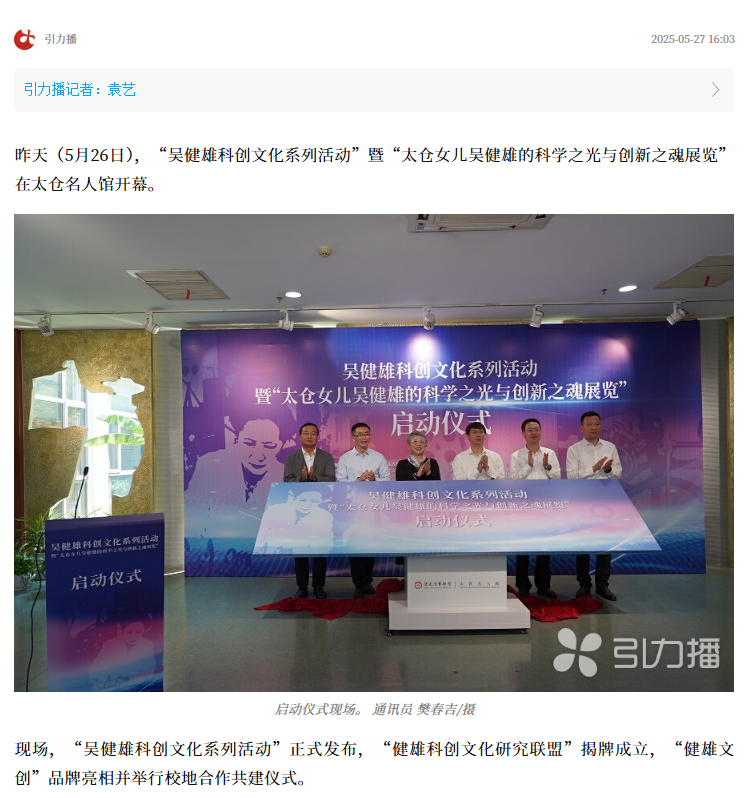 引力播 | 吴健雄科创文化活动启幕,将持续至10月