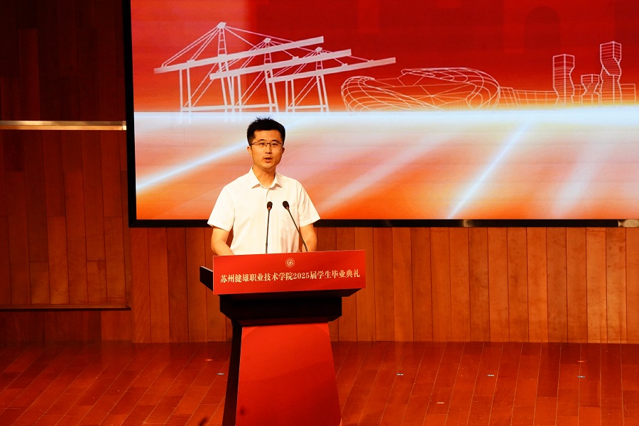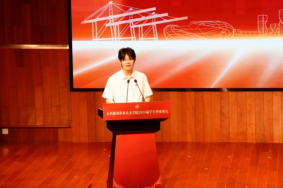 人工智能学院李睿作为优秀毕业生发言,他表示健雄的校园里承载着很多回忆,即将带着母校赋予的底气与勇气,奔向更广阔的天地,也会牢记“厚德载物、积健为雄”的校训,以求知之心、求实之行、求真之志,当先锋将、闯无人区、开报国路,千里跬步、追逐热爱、奔赴山海。