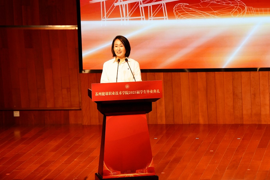 2010届校友、太仓富莱克斯模具科技有限公司总经理周丽用“勇敢、扎根、温度、积极能量”几个关键词勉励毕业生们走好未来的路,“大环境是背景板你才是画布上的主角!”如春风化雨,鼓励毕业生们在挫折中坚守初心,在奋斗中书写属于自己的传奇。