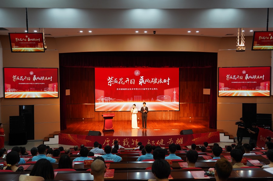 紫薇花开日,乘风破浪时。6月20日上午,我院在东校区报告厅举行2025届学生毕业典礼,全体党委委员、中层干部代表、企业代表、教师代表和毕业生代表欢聚一堂,2800多名毕业生在线收看直播,满载收获与梦想,在师友的见证下,开启人生崭新征程。