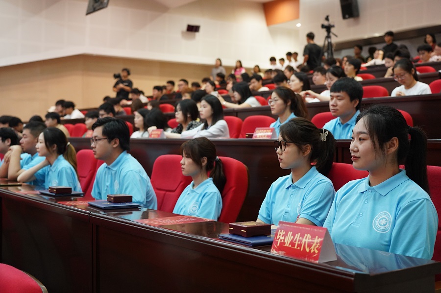 生物医药学院青年博士郑吉庆老师在发言中勉励毕业生要志存高远,勇于担当,要脚踏实地,勤于奋斗,要躬耕学习,善于思考,以技能之刃破局、用青春之火燎原,让青春在不懈的奋斗中绽放绚丽之花,让梦想在时代的浪潮中扬帆远航。