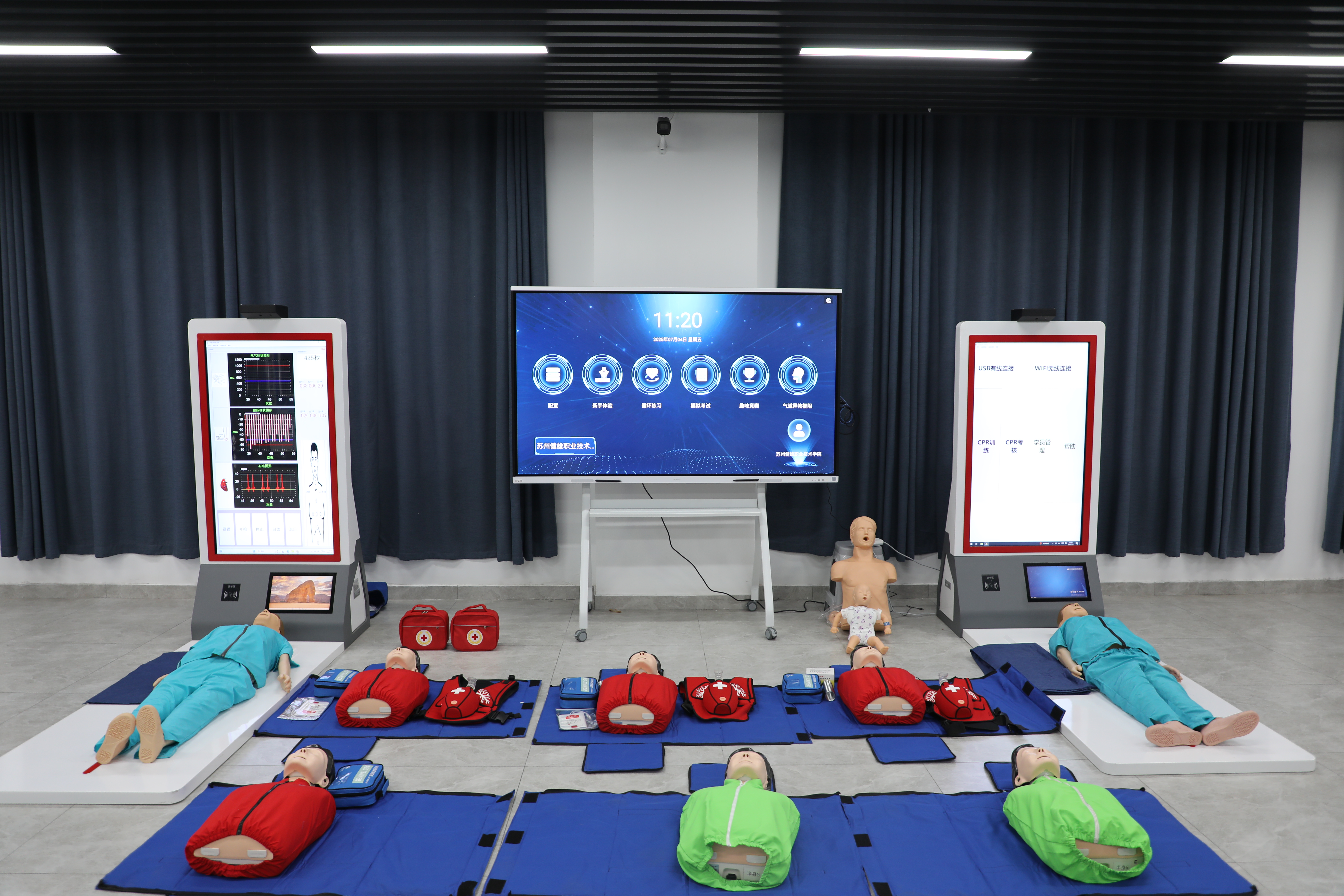 生命健康安全体验教室建设项目,由省级部门专项拨付救护设备和物资用以提升实验实训室建设。该项目充分依托数字化技术,打造集理论教学、模拟训练、科普展示于一体的综合性教育学习平台,能够让师生们沉浸式参与创伤救护、心肺复苏等丰富多样的实践体验活动,从而高效且扎实地掌握生命健康安全技能。