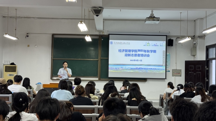 为切实保障2025级新生报到工作有序推进,9月11日晚,经济管理学院在C3-205开展2025年秋学期迎新志愿者培训,本次会议由经济管理学院团总支书记顾子琪主持,2025级新生辅导员和学院共80名志愿者参加。