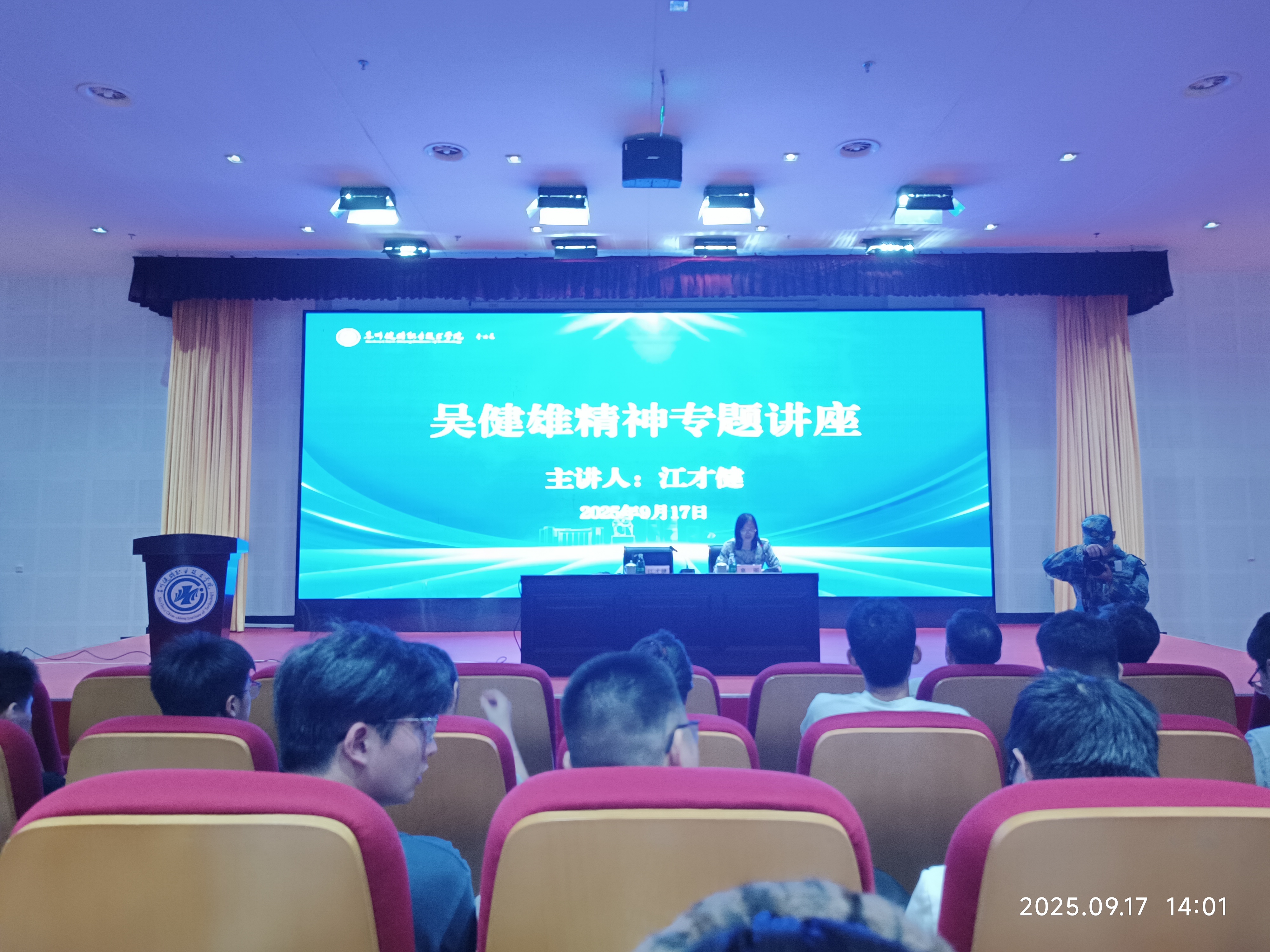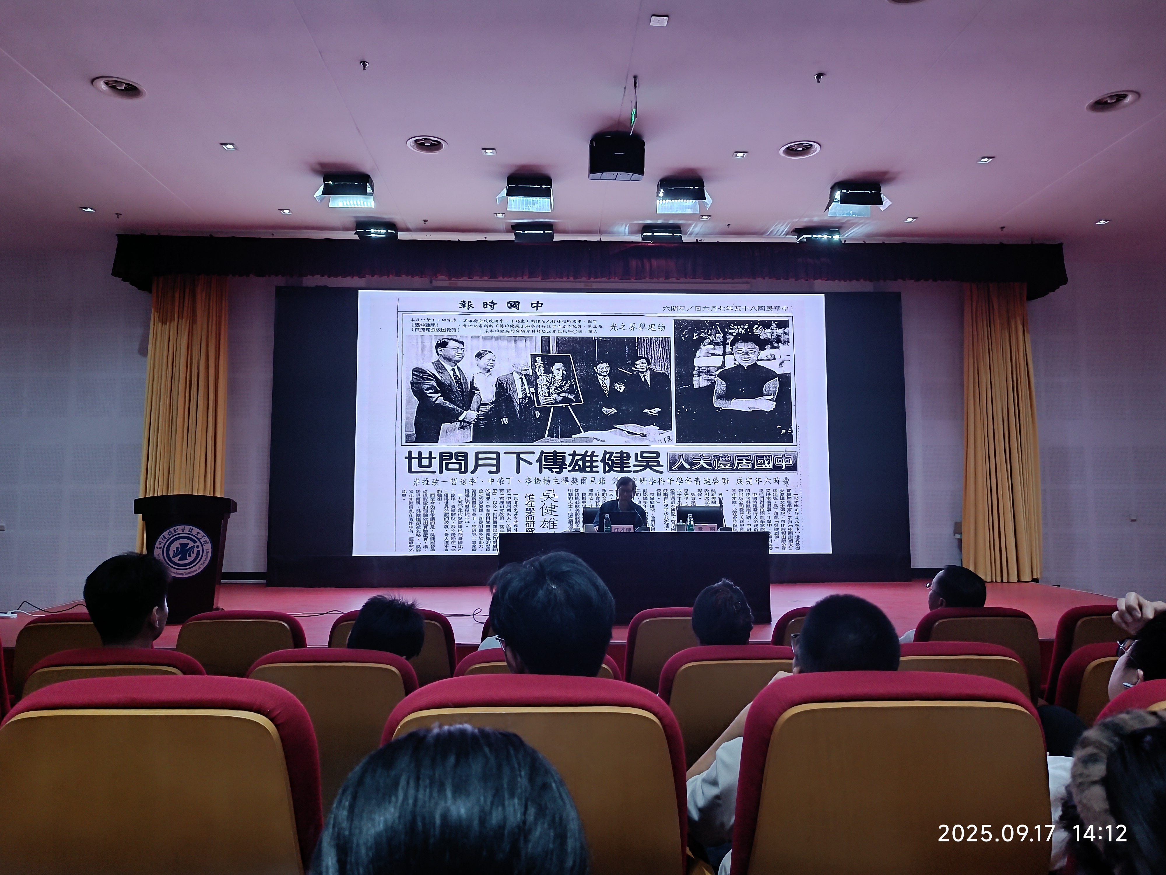 9月17日,台湾著名科学传记作家江才健先生受邀为我院2025级新生以及新入职教师带来题为“吴健雄的人生与科学境界”的专题讲座。作为《物理科学的第一夫人——吴健雄》的作者,江才健以独特的视角,为在场师生揭示了这位华人科学巨匠的传奇人生与深邃科学思想。