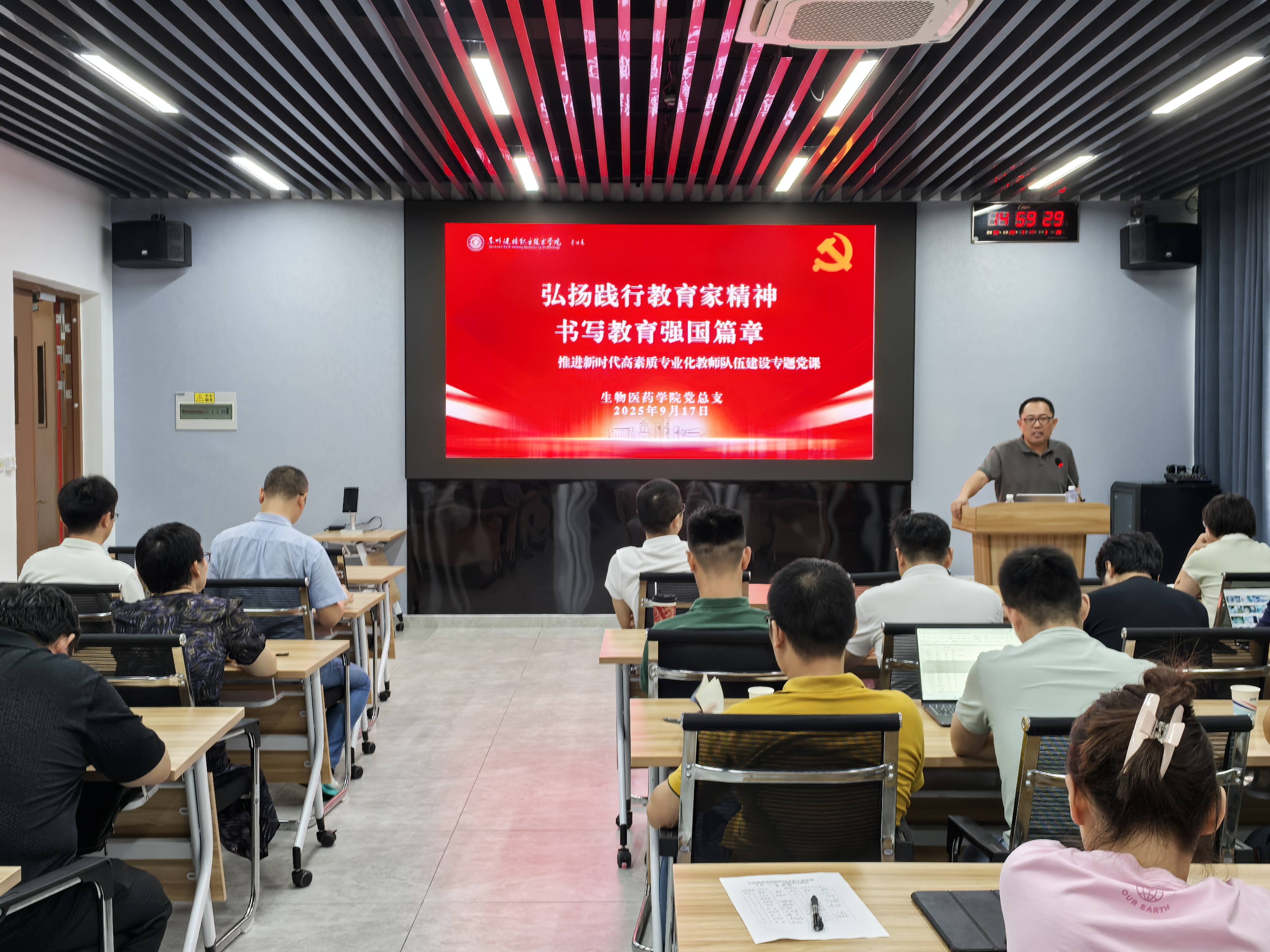 为弘扬践行教育家精神,推进新时代高素质专业化教师队伍建设,9月17日,生物医药学院党总支在D3-514会议室开展专题党课学习,全体教职工参加本次活动。