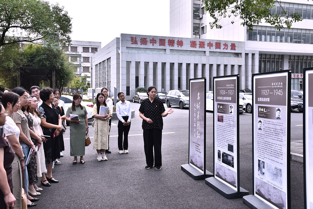 全体与会人员前往吴园南门,参观“娄城英烈红”太仓英烈事迹展。学院思政课教师冯晟,现场给参会师生上了一场别开生面的伟大抗战精神思政课,大家重温革命先辈在民族危亡时刻的抗争历程,进一步深化对“九一八”事变历史背景下民族精神的理解,增强个人投身现代化强国建设的使命感与责任感。
