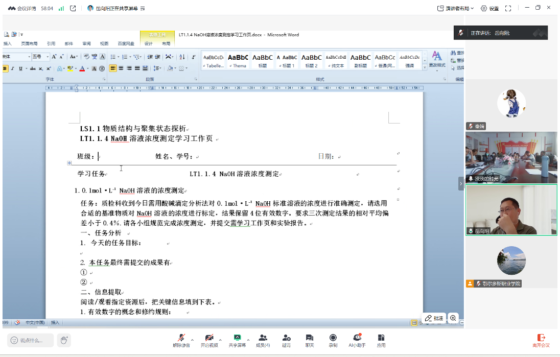 中德双元制学院岳向阳、秦婧老师,及鄂职院煤化工技术专业教学团队共同参会,双方围绕“学习领域1 煤化工生产过程分析”课程教学工作页与教案优化展开深度研讨,为校际教学协同赋能。