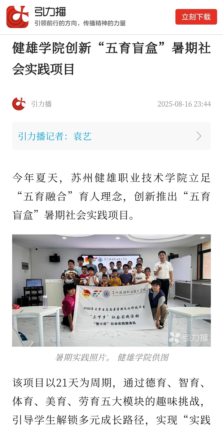 引力播 | 健雄学院创新“五育盲盒”暑期社会实践项目